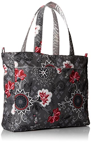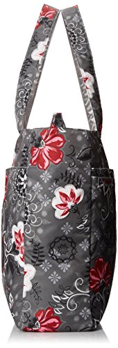 - Feature : Zippered tote with (9) pockets to keep you ultra-organized / 12" drop strap makes carrying this bag easy / Includes teflon treated outer fabric, agion anti-microbial protected linings and 3M thinsulate in the insulated bottle pockets / Mystic mani is a gray and red design with a sliver lining and is detailed with shinny silver metal hardware / Comes with a 90-day limited warranty against manufacturing defects