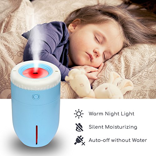 - PORTABLE & MINI - Equipped with a USB cable, this humidifier can plug and play conveniently. It will shut off automatically when water runs out, adding to safety, energy efficiency, especially for use at night