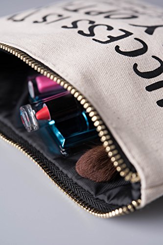 Comfyable Canvas Makeup Bag, Cotton Cosmetic Pouch, Toiletry Travel Case, Printed with "Success Is The Only … Makeup"