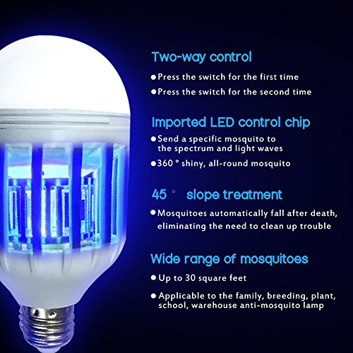 - NEW UPGRADED LED BULB:Our bug zapper light bulb use Imported LED Control Chip which can emit special light spectrum and light wave to attract mosquitoes. 360 degrees to shine.No mosquito gets away. Real Electronic mosquito Killer!!!Your good night partner!!