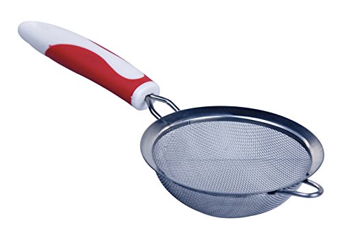 - Rubber handle that Fits secure in your hand and steel loop to stabilize the strainer