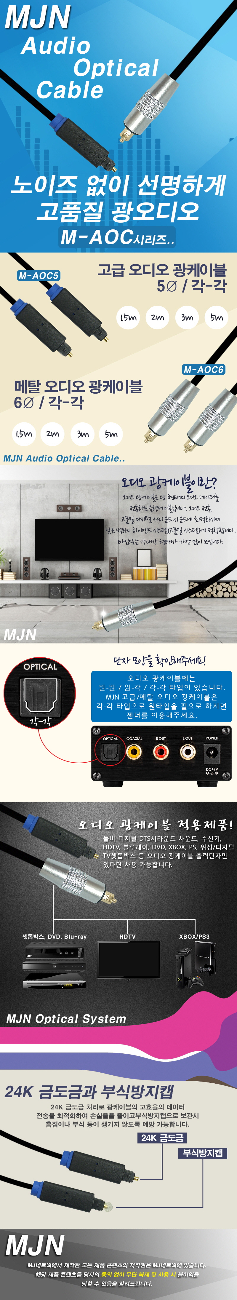 MJN M-AOC6 optical audio cable 6 pie angle - each