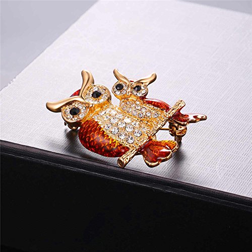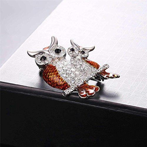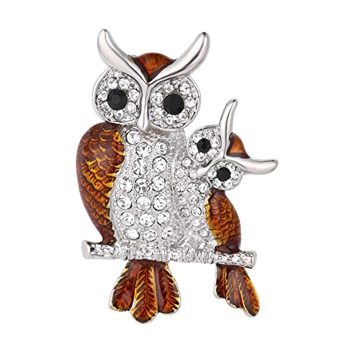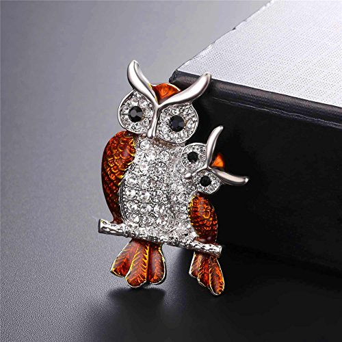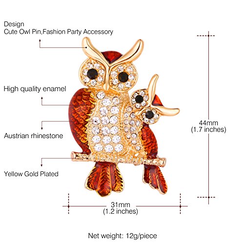 -. Feature : Multifuntional: corsage, scarp pin, hat accessories. / Base metal: copper. Material: rhinestones, high quality enamel / Double owls design: mother owl & baby owl. / Dimension: 4.4*3.1 cm(L*W). WEIGHT: 12 grams. / Warranty 90-Day money back guarantee or exchange.