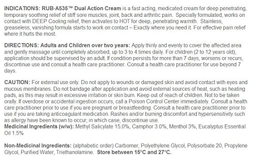 -. Title : RUB A535 DUAL ACTION CREAM For Relief of Arthritis, Rheumatic Pain, Muscle Pain, Joint & Back Pain 100 g