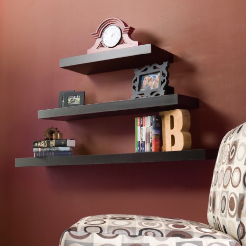 - Feature : Espresso finish / No visible screws, connectors, or tracks / Constructed of painted and laminated MDF / Max weight capacity: 30 lbs / Easy as hanging a picture