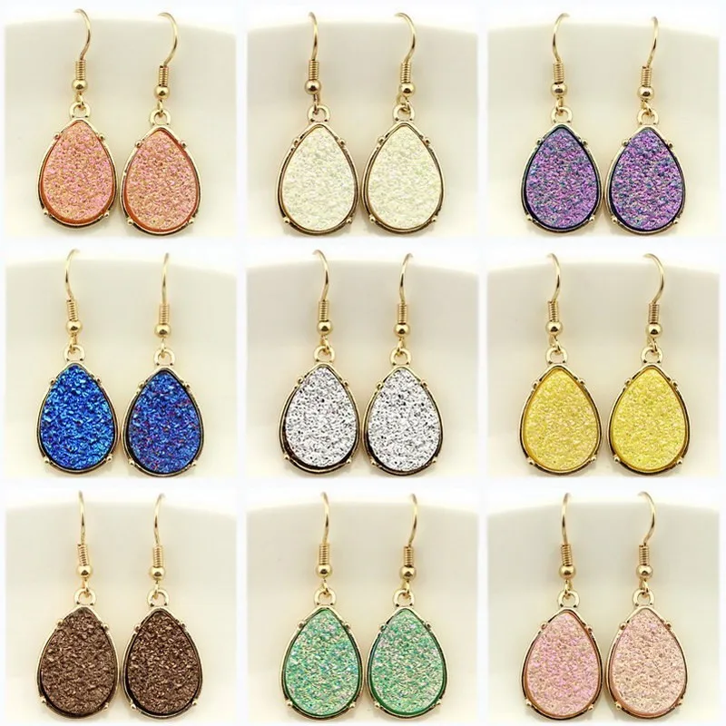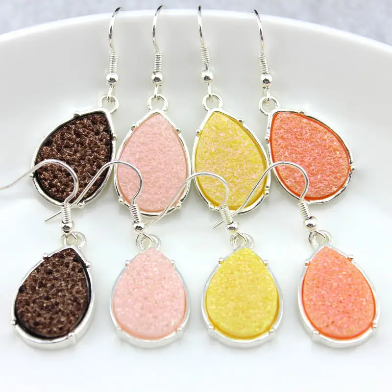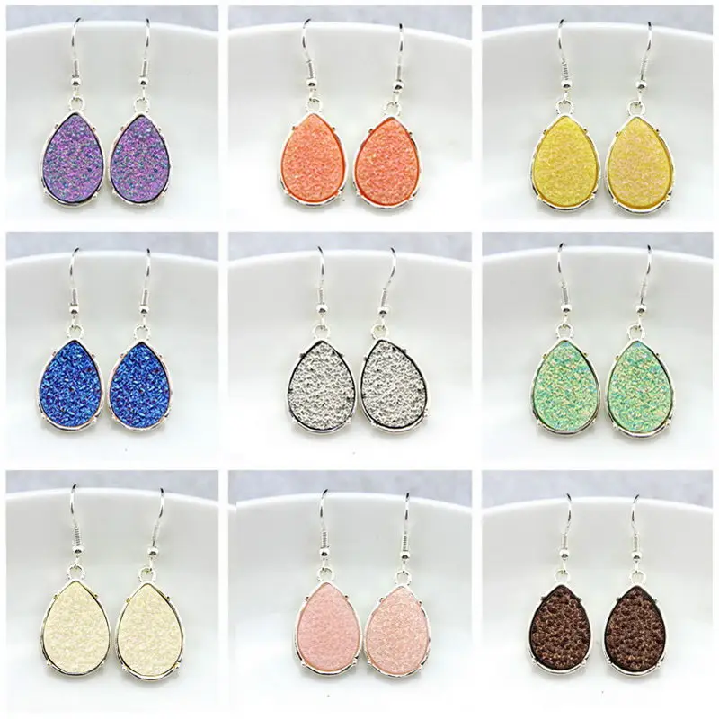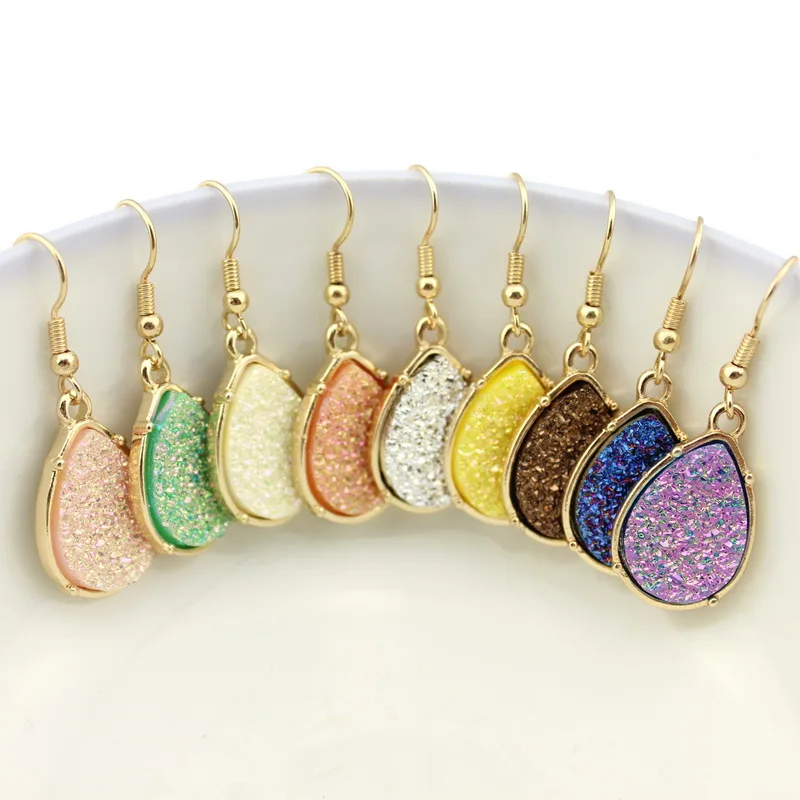 Products Name:Druzy Teardrop Dangle Drop Earrings