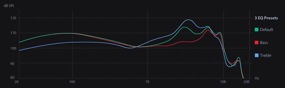 EQ Switch gives you a choice of three distinct sound signatures—treble, bass, and vocals—for alternative listening experiences and the right sound to match your music.