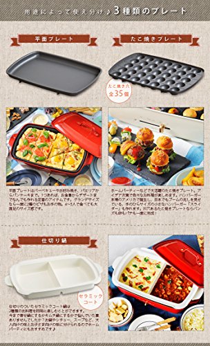 이데아 국제적 BRUNO 핫 플레이트 그란데 사이즈 (플레이트3 매부착) [ 레드 ]
