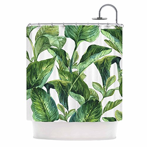 KESS InHouse Original Banana Leaves Green White Shower Curtain, 69" x 70"