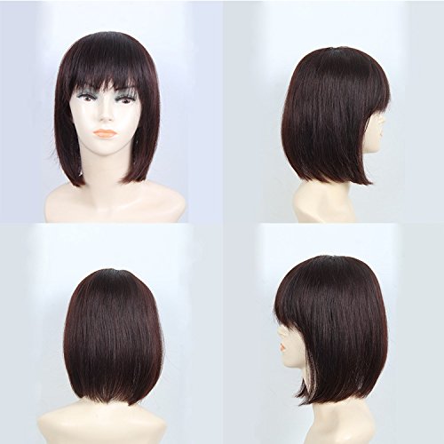 Remeehi 14" Long Straight Women Hairpiece 100% Human Hair Topper Long Hairpiece Flat Bangs Top ...