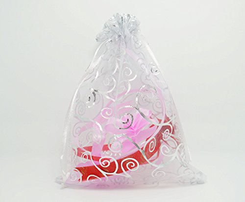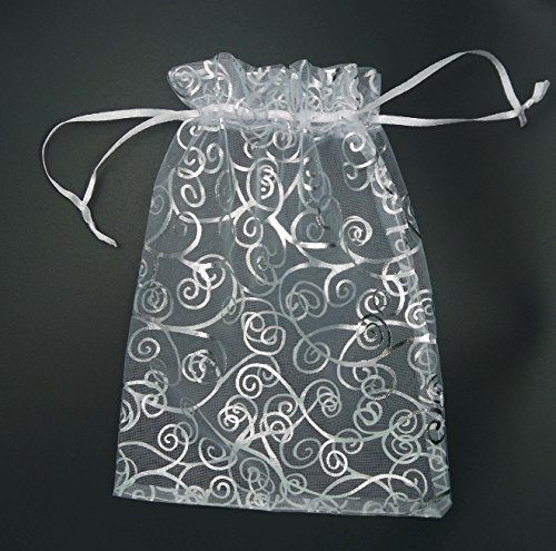 iBUY365 50Pcs Organza Drawstring Pouches Party Wedding White with Silver Gift Bags 5.9"x7.7" By iBUY365