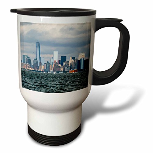 3dRose tm_203191_1 NYC and Freedom Tower Stainless Steel Travel Mug, 14 oz, White