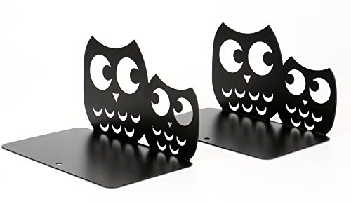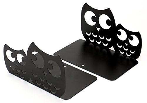 Fasmov Owls Nonskid Bookends Cute Bookends Art Bookends,1 Pair (Black)