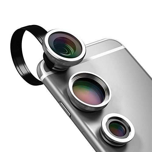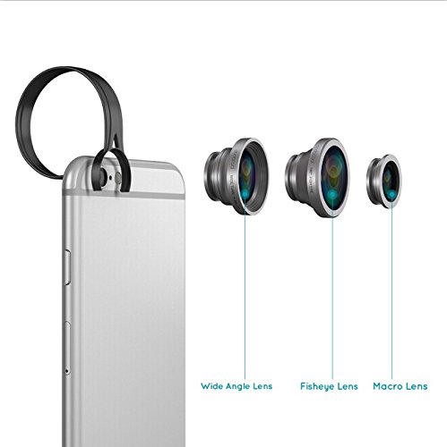 dodocool Cell Phone Camera Lens Kit with 180°Fisheye Wide Angle 3-in-1 For Smartphones (Silver)