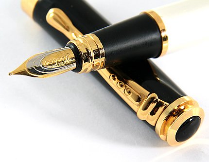-. Title : Mother of Pearl Fountain Pen Art Black Cap Push Style