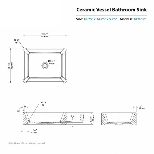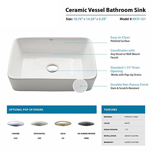 Kraus KCV-121 White Rectangular Ceramic Bathroom Sink
