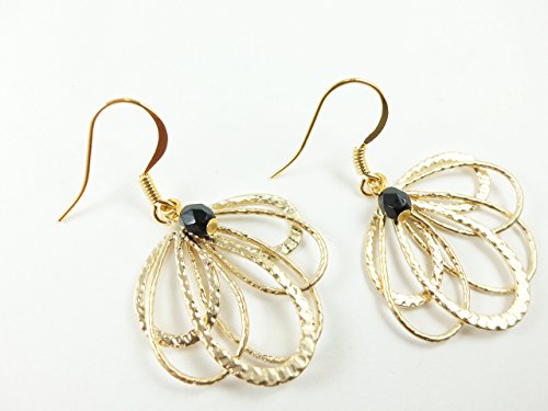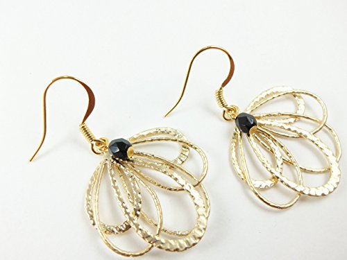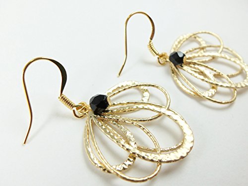 -. Title : Black and Gold Earrings Filigree Dangle Earrings Gold Drop Earrings Feather Filigree