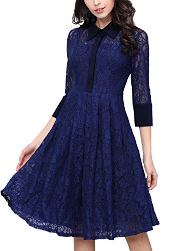 Title : Miusol Women's Retro Polo Neck Floral Lace Contrast Evening Swing Dress