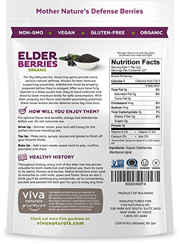 Viva Naturals Organic Elderberries are hand harvested from select organic farmers, and are certified non-GMO and kosher.