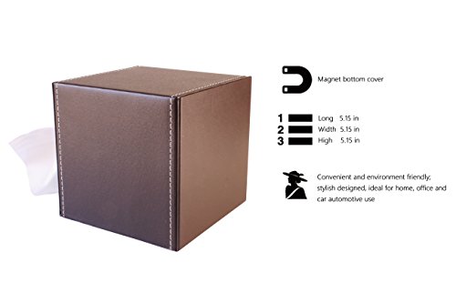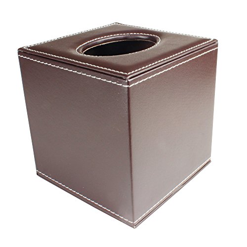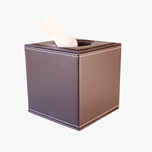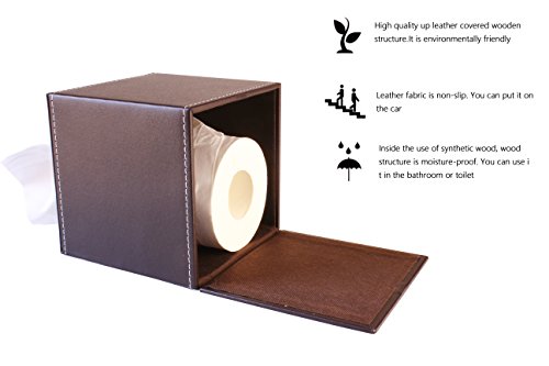 PU Leather Roll Tissue Box Holder Facial Tissue Box Cover Cover Decorative kleenex tissue box Square Case wooden (Brown)