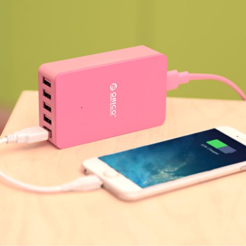 ORICO 40W 5 Port Family-Sized Desktop USB Charger for iPhone 6 / 6S, iPad Air 2 / mini 3, Galaxy S6 / S6 Edge, Nexus, HTC M9, Nokia and More-Pink (CSE-5U)