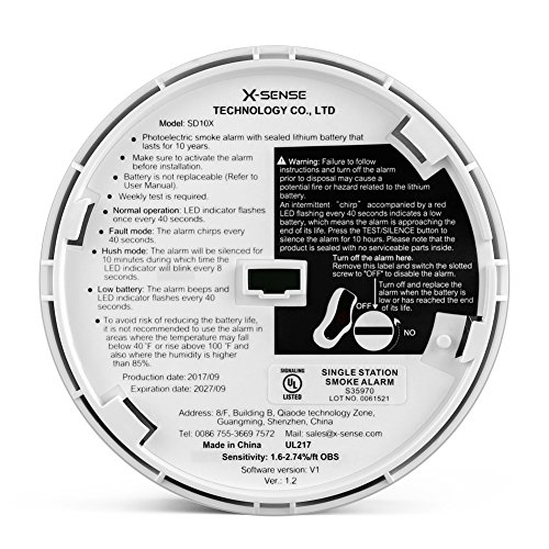GUARANTEED QUALITY: X-Sense smoke alarms are UL certified and conform to the UL217 standard for added peace of mind; comes with a 10-year warranty