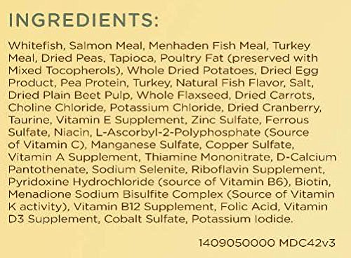 - Feature : Natural cat food with added vitamins & minerals / Real whitefish is the #1 ingredient / Zero grains, glutens or fillers / Zero poultry by-product meal / Zero artificial preservatives, colors or flavors