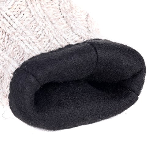 Sudawave Men's Knitted Wool Gloves with Leather Patch on Palm Micro Fleece Lined Warm Winter Gloves