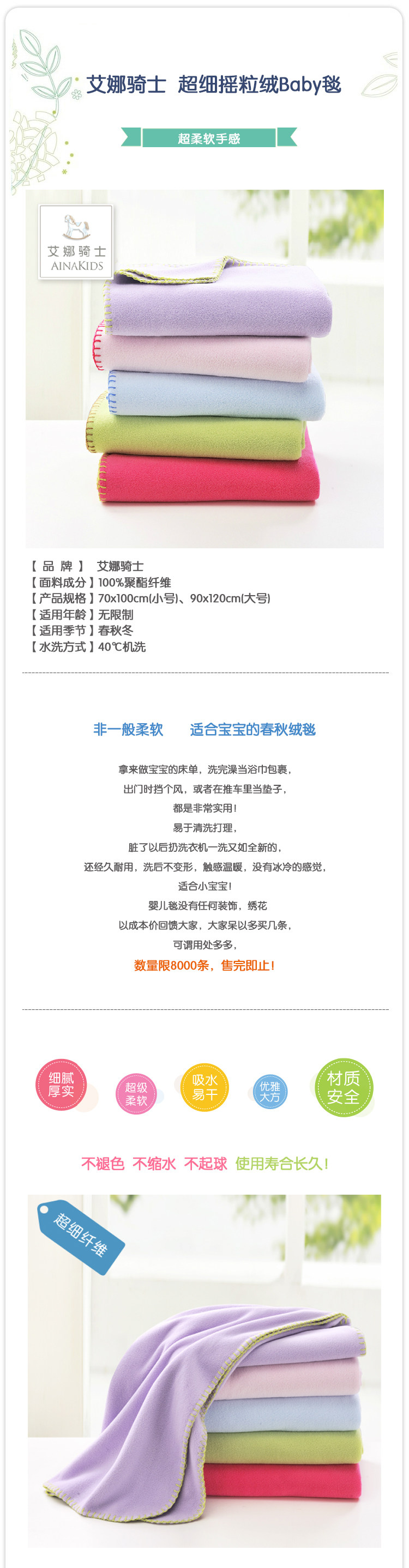 建议亲们收到毯子下水前,先把锁边接口自行多打几个结,