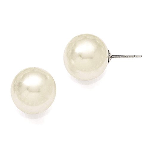 -. Title : 925 Sterling Silver 14-15mm Round White Simulated-pearl Stud Earrings by Majestik Pearls