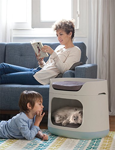 Keter Bunk Bed / Pet Carrier / Travel Crate With Cushions, 3-in-1 for Cats and Small Dogs, Small to Medium, Sandy/Misty Blue