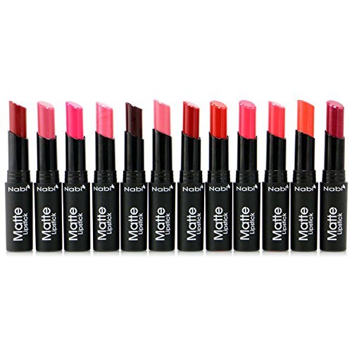 12pc Nabi Cosmetics Professional Matte Lipstick Set of 12 Amazing Colors #MLS01-12