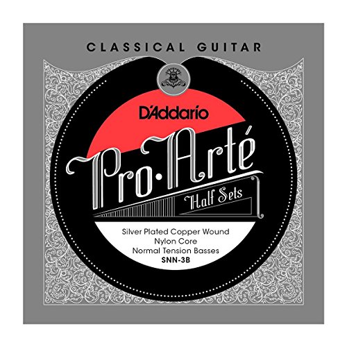 Studio : D'Addario Co. Inc Publisher : D'Addario Co. Inc Binding : Electronics Product Description SNN-3B, normal tension, is a bass classical half set made up of D'Addario's silver plated copper wound on a multifilament nylon core for a consistent and warm, yet projecting tone. D'Addario Half Sets provide the flexibility for each player to customize their own sound and feel. Choose from a wide range of material combinations to create the voice of your instrument. Each set contains 3 treble or bass strings in a convenient reseal able pouch 0