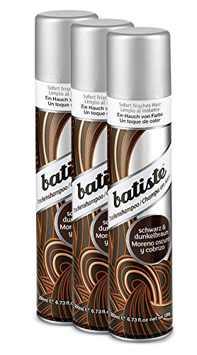 -. Feature : 3x 200ml - Batiste Trockenshampoo für dunkles und tiefbraunes Haar- ideal zwischen den Haarwäschen / ergänzt dunklere Farbtöne und hilft bei gefärbtem Haar den ungefärbten Wurzelansatz auszugleichen / belebt das Haar, entfernt überschüssiges Fett, verleiht Fülle, Volumen sowie einen blumigen Duft / ideal auch auf Reisen, für Festivals und beim Campen!! / Tolles Haar für jeden Tag, ganz ohne Wasser