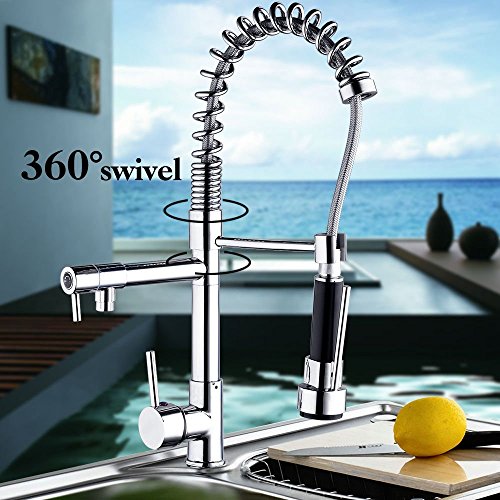 OUBONI US Kitchen Sink Faucets Pull Down Sprayer Single Handle Solid Stainless Steel Kitchen Mixer Tap