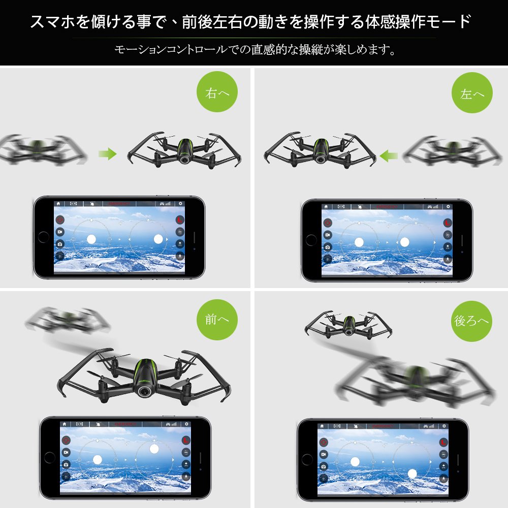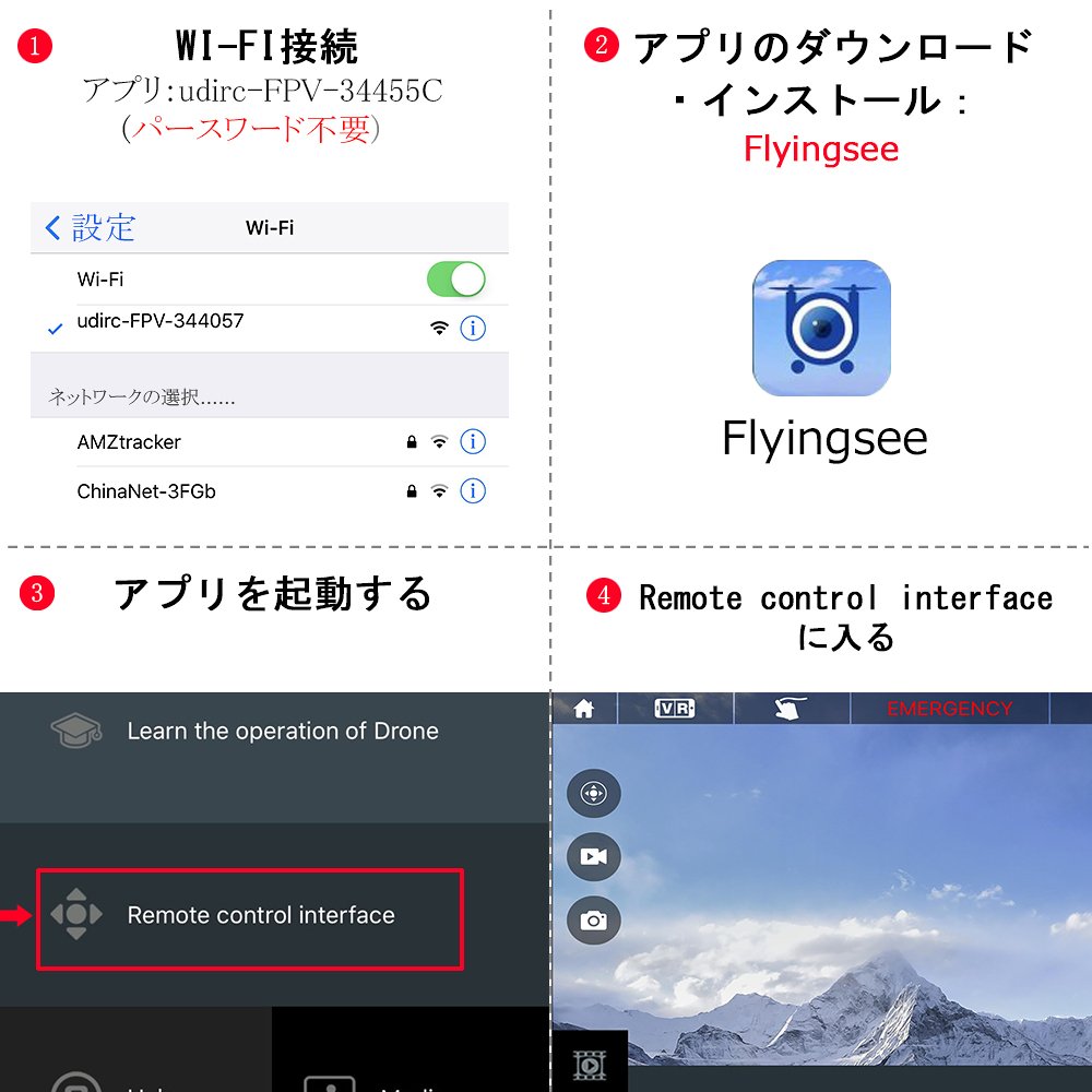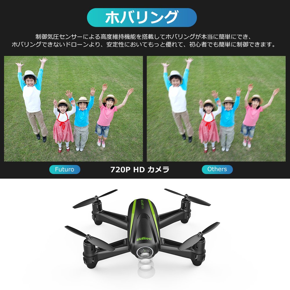 【FPV機能●720P広角カメラ付き】UdiR/Cでは、120°広角 720Pカメラ付きで手持ちのスマートフォンに無料アプリをインストールすれば、即、コクピットからの視界でフライト体験ができます。FPV(リアルタイム映像)でドローンが見ている視界を常に把握できるので、撮りたい瞬間を逃しません。