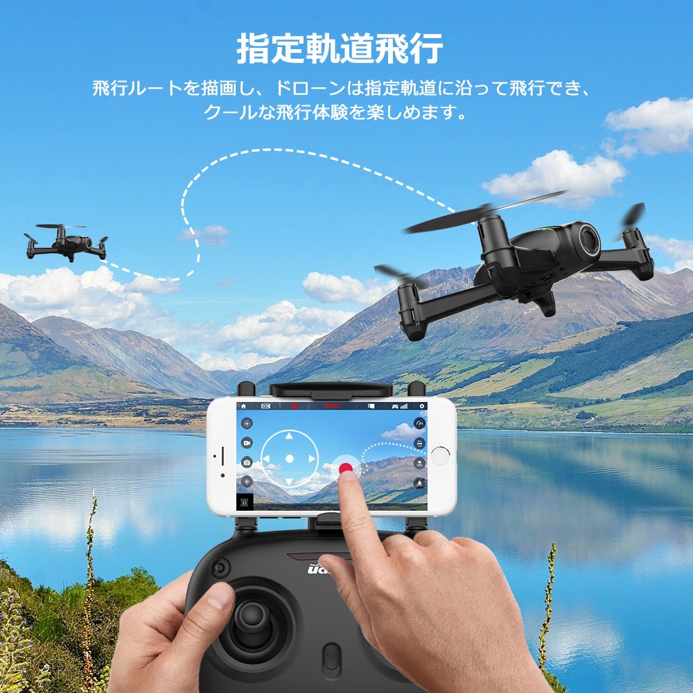 【ホバリング制御●飛行ルート設定】気圧センサーによる高度維持機能を搭載してホバリングが本当に簡単にでき、ホバリングできないドローンより、安定性においてもっと優れて、各角度から映像を撮り、初心者でも簡単に制御できます。スマホアプリの右側のエリアに飛行ルートを描画し、ドローンは飛行ルートに従って飛行でき、クールな飛行体験を楽しめます。