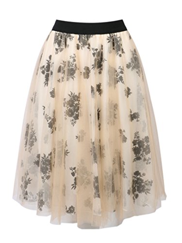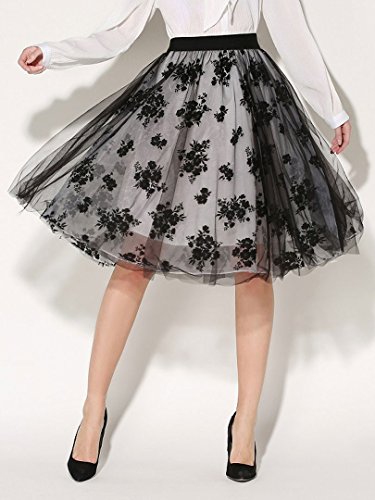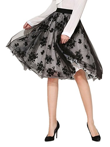 -. Title : Choies Women's Vintage Retro Black High Waist Floral Print Tulle Knee Length Skirt