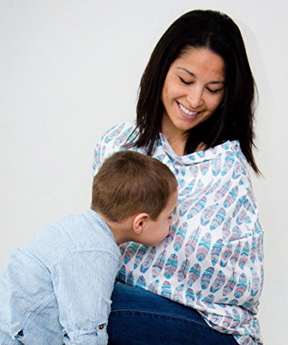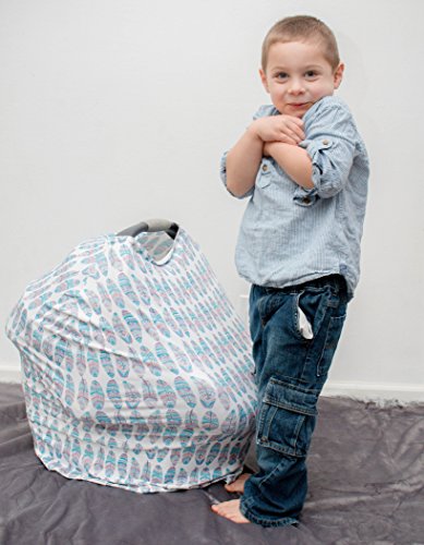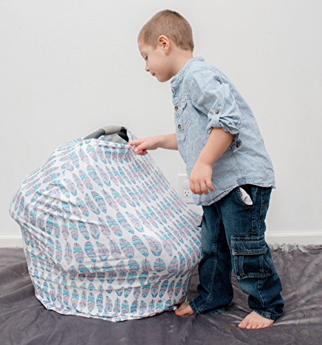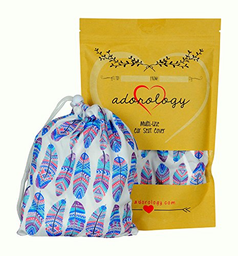Baby Car Seat & Nursing Cover & Drawstring Carry Bag in Cute Feather Design Shower Gift Breathable Stretchy Universal 4 in 1 Multi-Use Infant Carseat Canopy...
