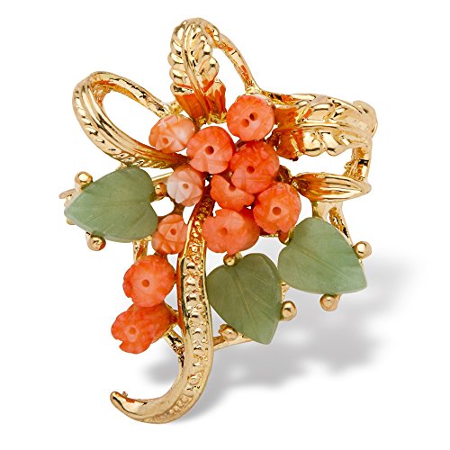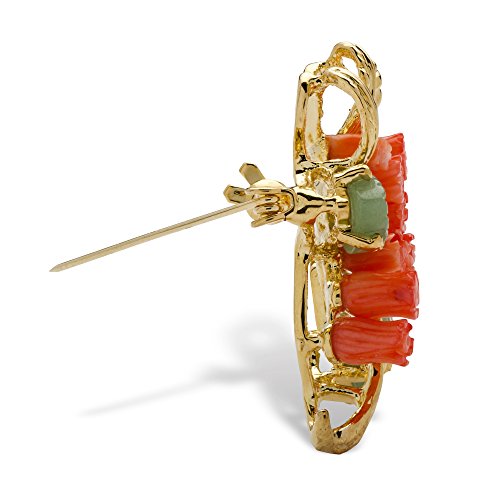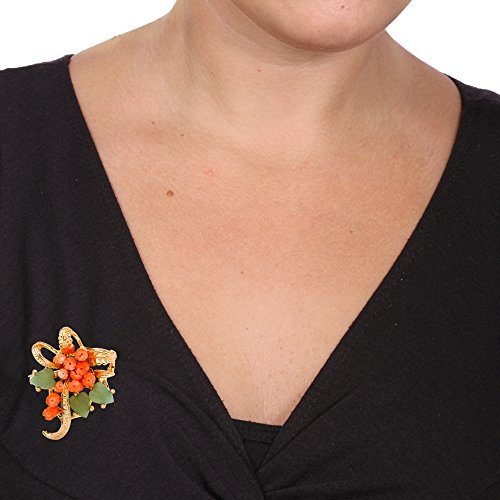 -. Title : Genuine Orange Coral and Green Agate Yellow Gold Tone Bouquet Pin