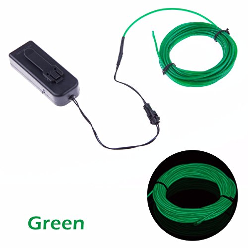 -. Title : Yakamoz 16.5Ft Eye Catching El Wire Rope Light Strip Cable for Car Party Holiday Decorating Cosplay , 3 Modes Battery Controller - Green