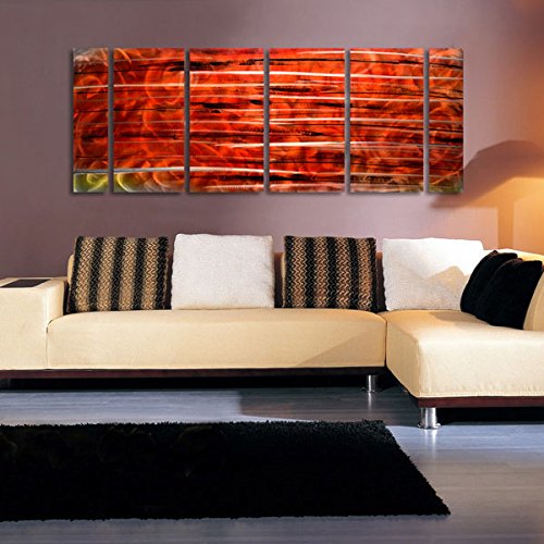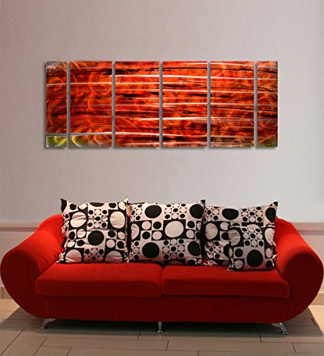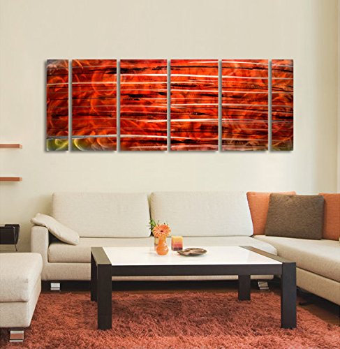 - Size of this large six-panel red metal wall decor painting is 65"x24" (The size of the four bigger inner panels is 24"x 12" and the two smaller outer panels are 24" x 6"). The dimensions include 1 in spacing between the panels.