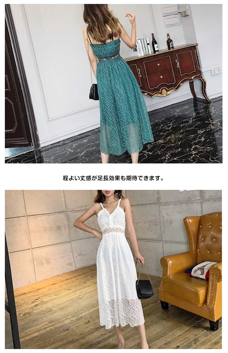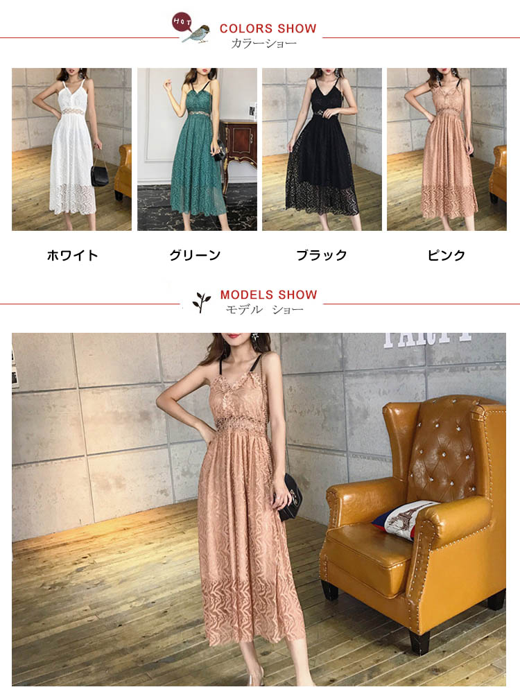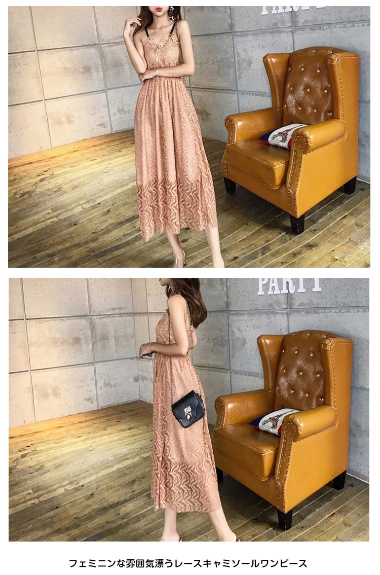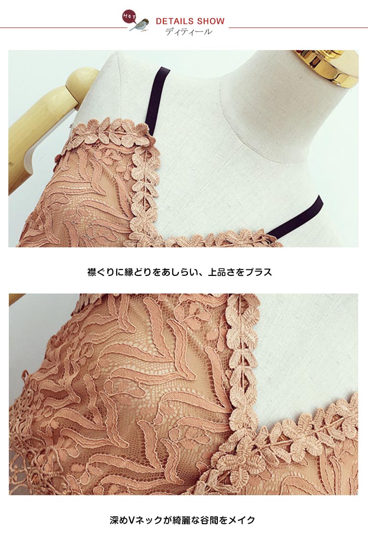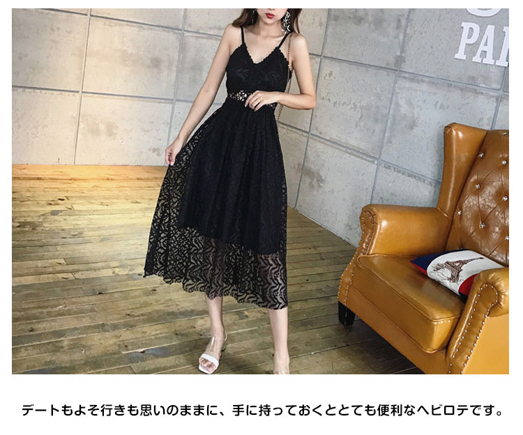 | フェミニンな雰囲気漂うレースキャミソールワンピースウェストは今季大hitのシースルーレースを採用、「くびれ美人」を生まれます程よい丈感が足長効果も期待できます。広めに取ったVネックが美しいデコルテラインを演出してくれますデートもよそ行きも思いのままに、手に持っておくととても便利なヘビロテです。 | |