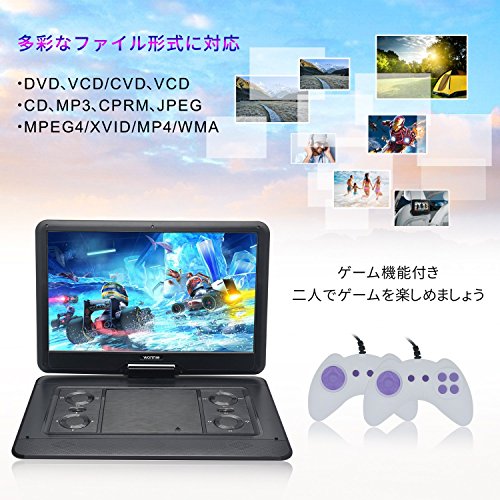 多くのフォーマットのディスクに対応 ●対応フォーマット:CPRM、DVD、CD、CD-R、VCD、JPEG、MP3、WMA、AVI ●インターフェース:USB2.0(USBメモリーのみ対応 最大16GBまで対応) ●SDメモリーカード、SDHCメモリーカード(最大16GBまで対応) ●USB/SDカードからのみの再生となります。 | ゲーム機能搭載 初めに新機能追加されました! 車や新幹線、電車など長距離、子どもと一緒に乗り物でお出かけする場合、子供がゲームや映画を楽しめます。長距離ドライブ渋滞でも、お子様も退屈せずにDVDを流し車内の空間が快適に楽しめます。 | 16インチの大画面モニター 大型モニターの搭載のポータブルDVDプレーヤーです。シガーソケットアダプタを付属しているので、旅行用、車内でのお子様用など様々なシーンで活躍します。 |