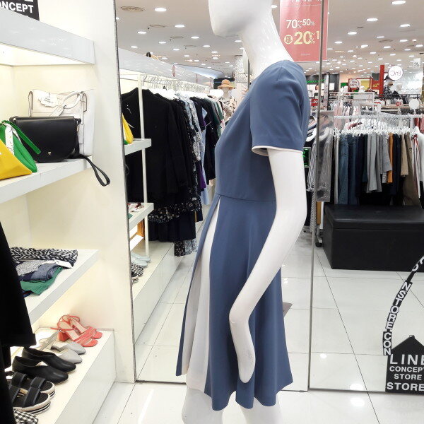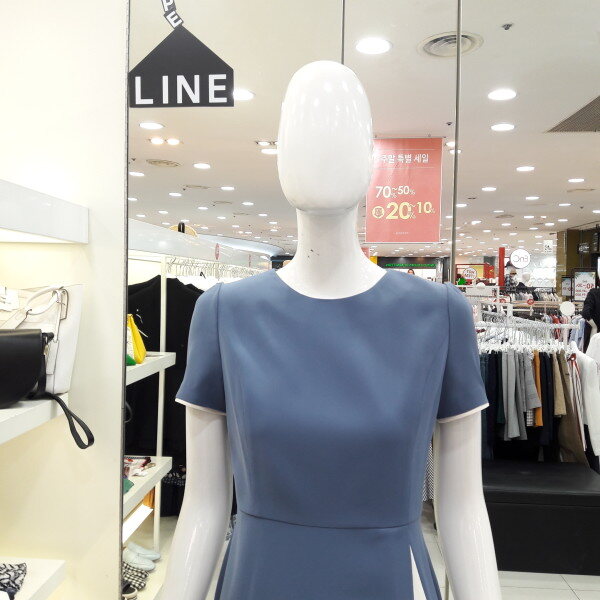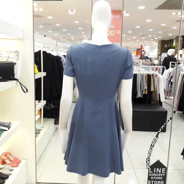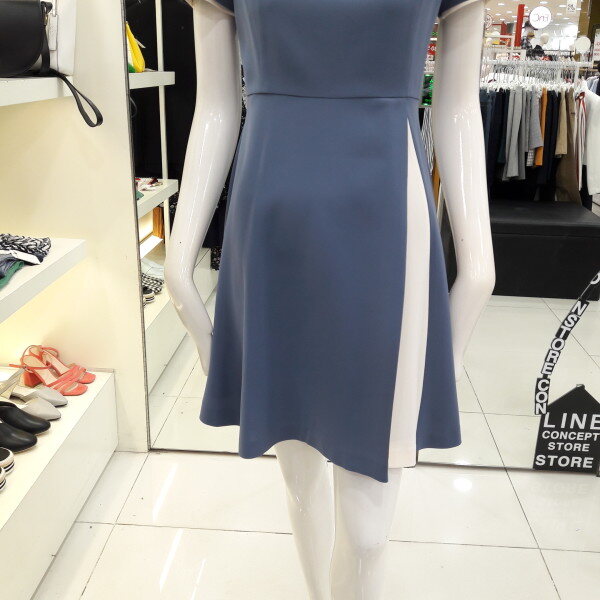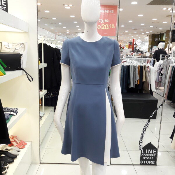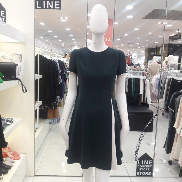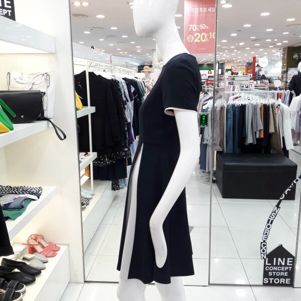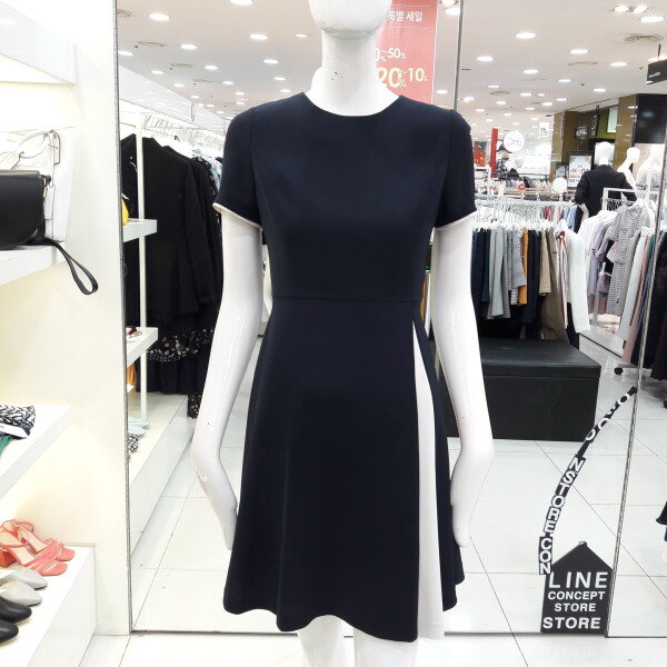 18년 여름 신상 우아하고 여성스러운 분위기의 원피스입니다 단정한 넥라인에 스커트배색으로 셰련되보이며 사랑스러운 플레어 스타일로 하객룩 모임룩으로 추천합니다