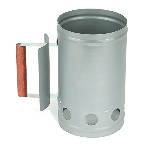 Rocky Mountain Goods Chimney Charcoal Starter - Wooden handle with heat shield design to keep hands from burning - Fast lighting - No need for lighter fluid - Heavy duty steel holds up to 5 lbs