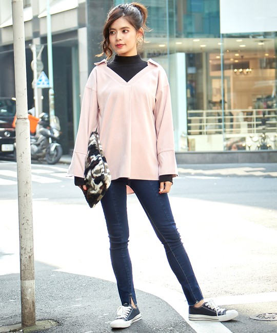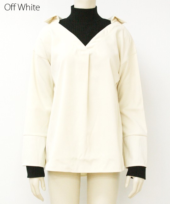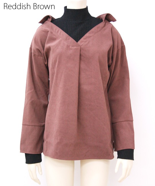 ハイネックカラーと袖口にワイドリブを使用し、レイヤード感を演出☆
