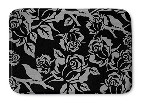 KAVKA Designs Silver Metallic Garden On Black Memory-Foam Bath Mat, (Grey/Black) - , Size: 24x36x0.75 - (PLUAVC2603SUML)