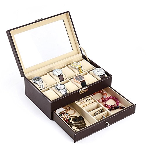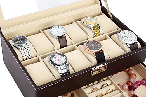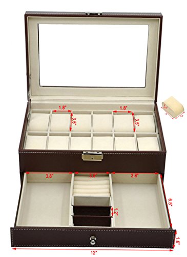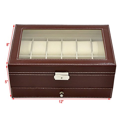 -. Title : Autoark Leather 12 Mens Watch Box with Jewelry Display Drawer Lockable Watch Case Organizer,Brown,AW-003