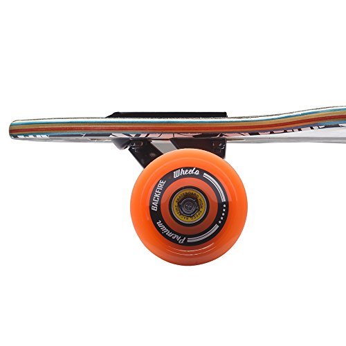 -. Feature : Backfire longboard, 8 ply Canadian maple deck with 3 dyed layer / Wheels: 70x51mm 75% rebound, 83a hardness, ideal for carving, cruising, freerider / Truck: 7 inch, inverted.356-t6 aluminum alloy base plate and hanger / Bearings: Abec-9 high speed special bearing, filling with speed cream lubricants / Grip:Os-800 grip tape, pac substrate, adhesive to the board stronger, hard and sharp of silicon carbide